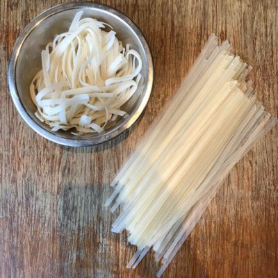 אטריות אורז לפני ואחרי השריה . צילם ועשה צל על השולחן עז תלם