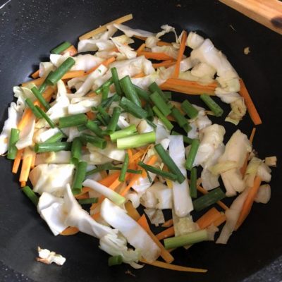 ואחרי טיגון קל מוסיפים את הבצל הירוק. צילום עז תלם