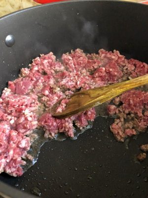 מטגנים את הבשר בסיר רחב לשטוח מעל להבה גבוהה. צילום עז תלם
