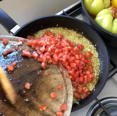 מוסיפים את קוביות העגבניות לבצל המטוגן צילום עז תלם