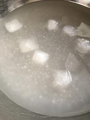 אחרי הבישול והסינון משרים אותן במים עם קרח כדי שיתייצבו. צילום עז תלם