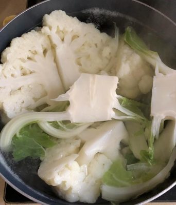 מבשלים עד שהכרובית שינתה צבע והתרככה. צילום עז תלם