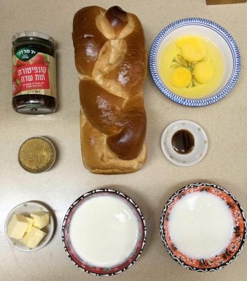 כל המצרכים לפרנצ' טוסט במילוי ריבה. צילום עז תלם