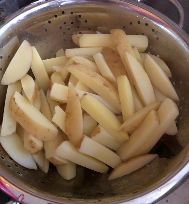 - כשתפוחי האדמה התקררו – אתם יכולים רשמית להפוך אותם לצ'יפס.