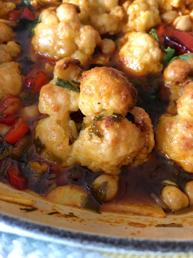 מקורית שלי: כרובית מטוגנת ברוטב חמוסטה חמצמץ עם כרישה וסלרי