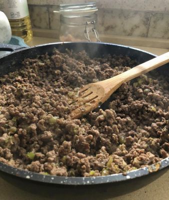 מוסיפים בהרט ומלח ומטגנים עד שהבשר משנה צבעו ולא נשארו הרבה נוזלים בסיר. צילום עז תלם