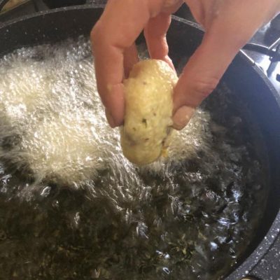 מניחים את הקובות בשמן, חשוב לא לטגן יותר מדי במקביל. צילום עז תלם