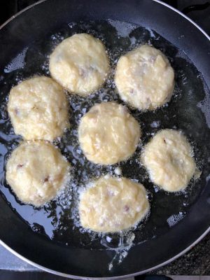 מהציפוי הקובות נכנסות לשמן לטיגון חצי עמוק. צילום עז תלם