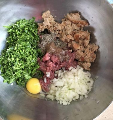 תערובת הקציצות בשר, ביצה, פטרוזיליה, בהרט, לחם מושרה סחוט, בצל ומלח פלפל. צילום עז תלם