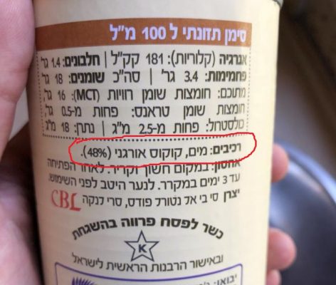 קרם קוקוס שמתאים לקצפת יכיל רק מוצקי קוקוס ומים צילום עז תלם
