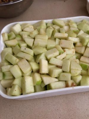 התפוחים המתובלים מחכים לקראמבל. צילום עז תלם