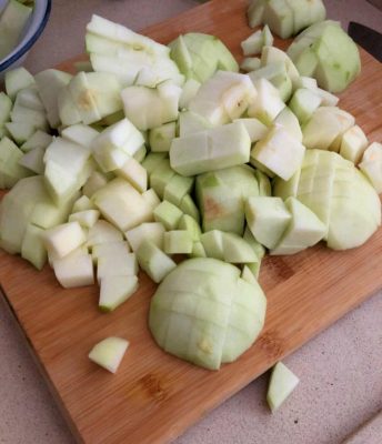 חשוב שהתפוחים יהיו חתוכים לקוביות בגודל אחיד. צילום עז תלם