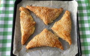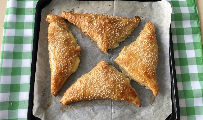 • אופים 10-15 דקות או עד שהבצק מזהיב והגבינה נמסה. בזמן שהמגש הראשון בתנור חוזרים על הפעולות עם שאר הבצק והמצרכים.