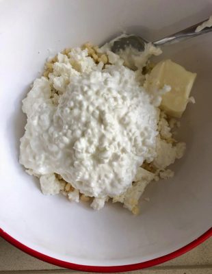 שמים את הגבינות, החמאה והשמן בקערה. צילום עז תלם
