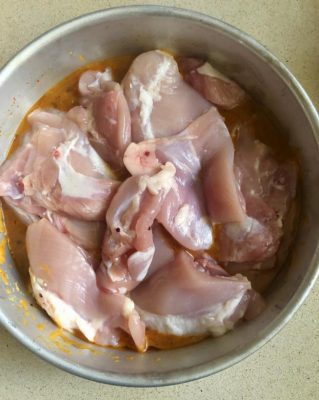 שמים את הפרגית במרינדה ומעסים היטב. צילום עז תלם