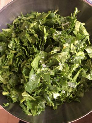 שמים קצת מלח על התרד הקצוץ. צילום עז תלם