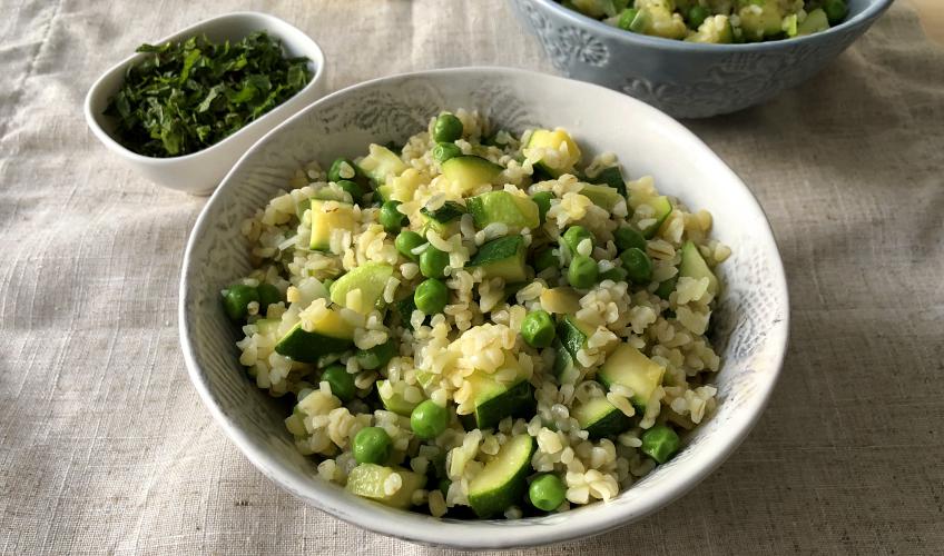 תבשיל בורגול עם אפונה וקישואים. צילום עז תלם