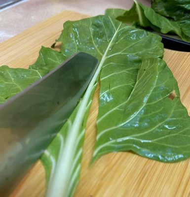 מפרידים בין הגבעול הלבן לעלה הירוק של המנגולד. צילום: עז תלם