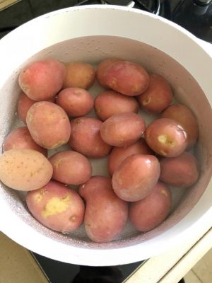 שמים את תפוחי האדמה – עם הקליפה בסיר עם מים קרים ומתחילים לבשל צילום עז תלם