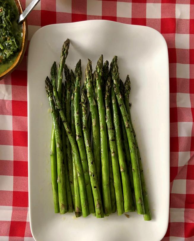 אספרגוס הוא ירק נהדר וכיפי, שיוצא ממש מפתיע במנגל. בצלייה מהירה אין צורך לקלף אותו.