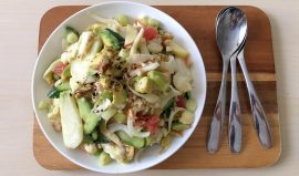 סלט חורפי משמח של כרובית, שומר, אבוקדו ותפוח (כן!) ברוטב ויניגרט הדרים על בסיס מיץ תפוזים שמתקתקים בשניות. מתכון שעושה כבוד לירקות הנפלאים של החורף