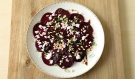 קרפצ'יו סלק מושלם שמתקתקים בבית בקלי קלות ויוצא יותר טעים משל המסעדות! משתמשים בסלק אפוי עסיסי בתבול סילאן, בלסמי ושמן זית עם גבינת פטה וצנוברים
