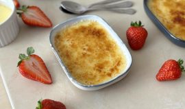 מדריך מקיף להכנת קרם ברולה מושלם: קינוח של קרם עשיר בוניל עם נקודות שחורות, ומעליו מעטה קרמל שברירי שמתפצח עם כפית. מתכון כולל סרטון שלבי הכנה וטיפים שמקצרים דרך והופכים את ההכנה לקלה במיוחד